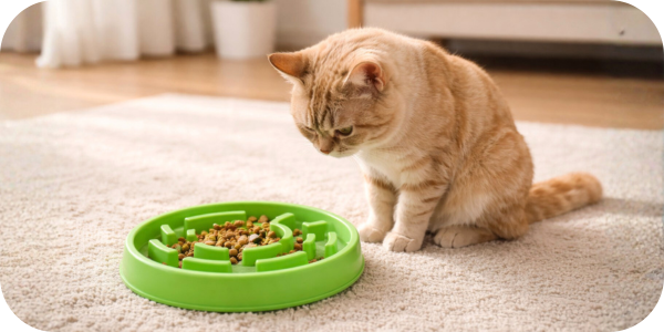 This mimics a cat’s natural feeding habit of eating little and often throughout the day and night via the hunting of small prey species. To prevent accidental overfeeding, you can weigh or divide out smaller portions of food for your cat in advance each day, so they’re not exceeding the recommended total quantity per day. For night feeding or feeding your cat while you’re at work, timed feeding devices can be very helpful. - Via a variety of puzzle feeders